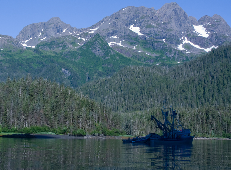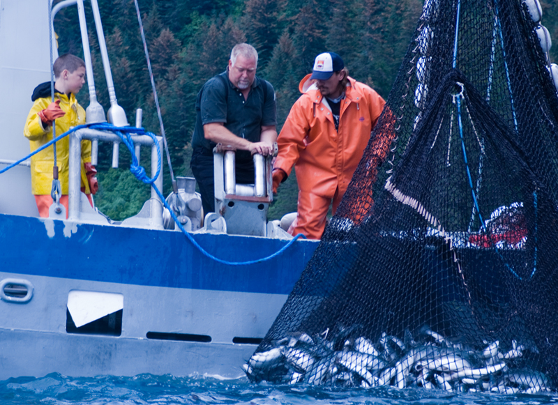 Even when fishing is done much work is left to be done. Here a king salmon is butchered.