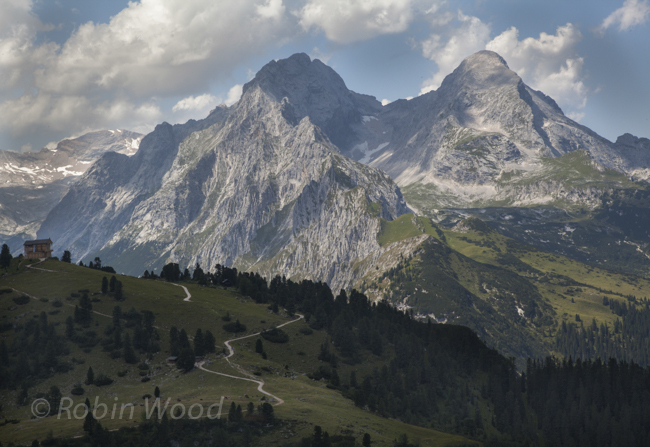 Above: Alps rise just north of the German-Austrian border. The winding road leads to the summer house of Kind Ludvig II, whose main castle I featured in an earlier post. Photographed August 6, 2013.