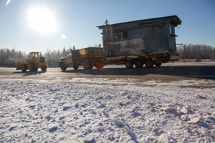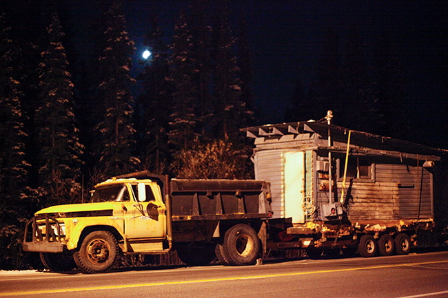 I left right as a tow truck arrived on the scene, expecting never to see the uniquely Alaskan towing operating again. Wrong. Returning home late that night I found the truck and trailer sitting on the side of the road, having moved only a few-hundred yards.